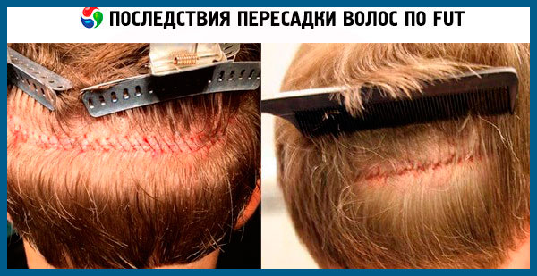 После пересадки по методике FUT остается длинный шрам, он может достигать 25 см и зависит от размера взятого донорского материала. Он длительное время вызывает неудобства и неприятные ощущения в процессе реабилитации, а при короткой стрижке будет заметен.