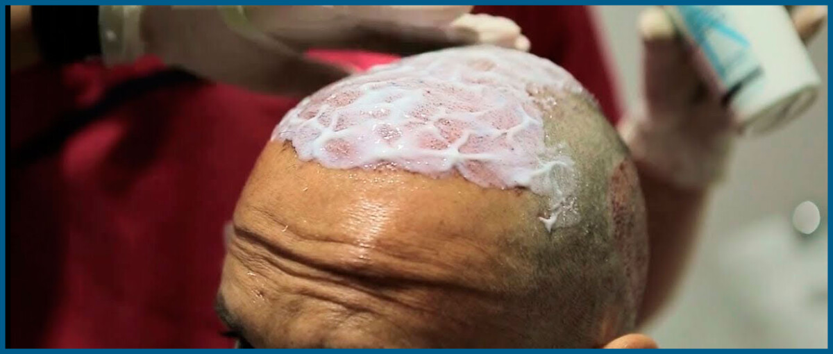Впервые после проведенной процедуры трансплантации, голову моют в клинике уже следующим утром. Специалист подробно рассказывает и показывает как это делать, в дальнейшем мыть голову придется самостоятельно, строго следуя полученным рекомендациям.