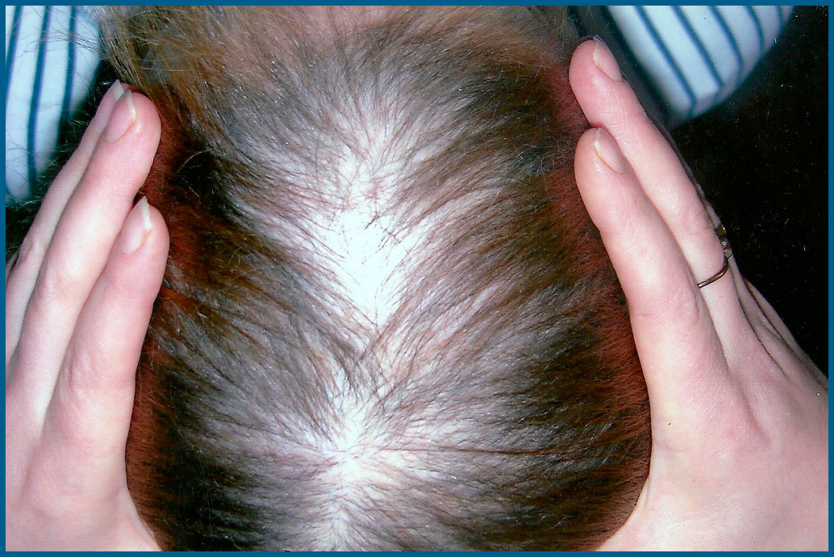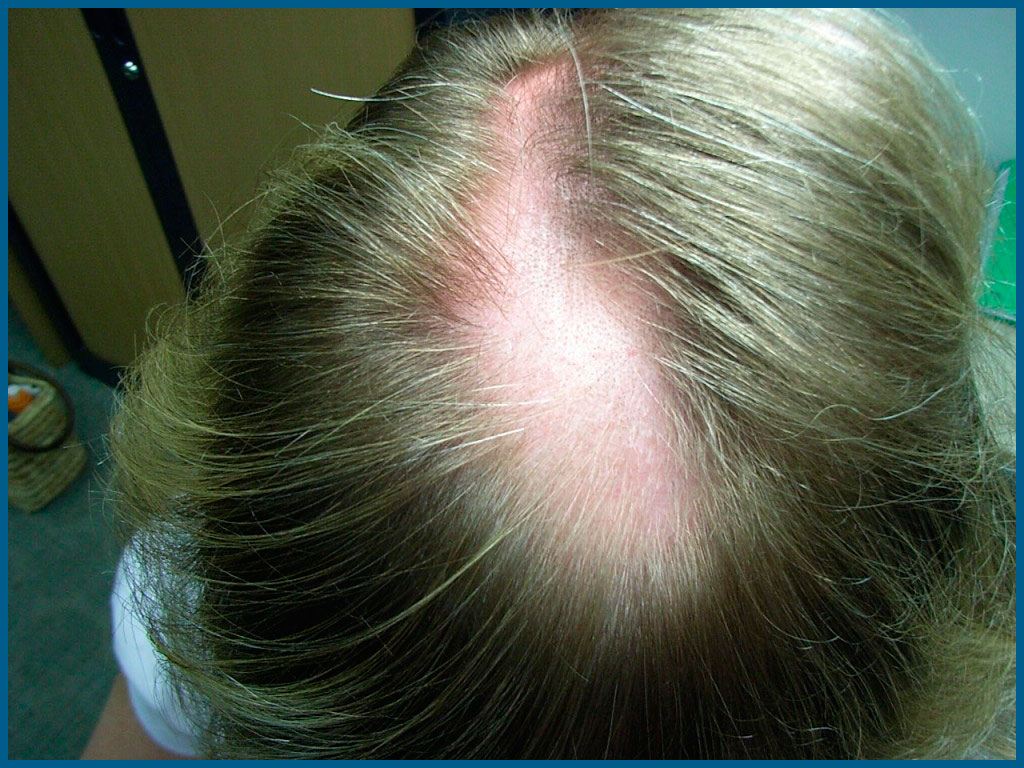 Всегда в центре получившихся «залысин» остаются здоровые волоски. Поражения ткани формируют рубцы (отсюда и название) и атрофические поражения.