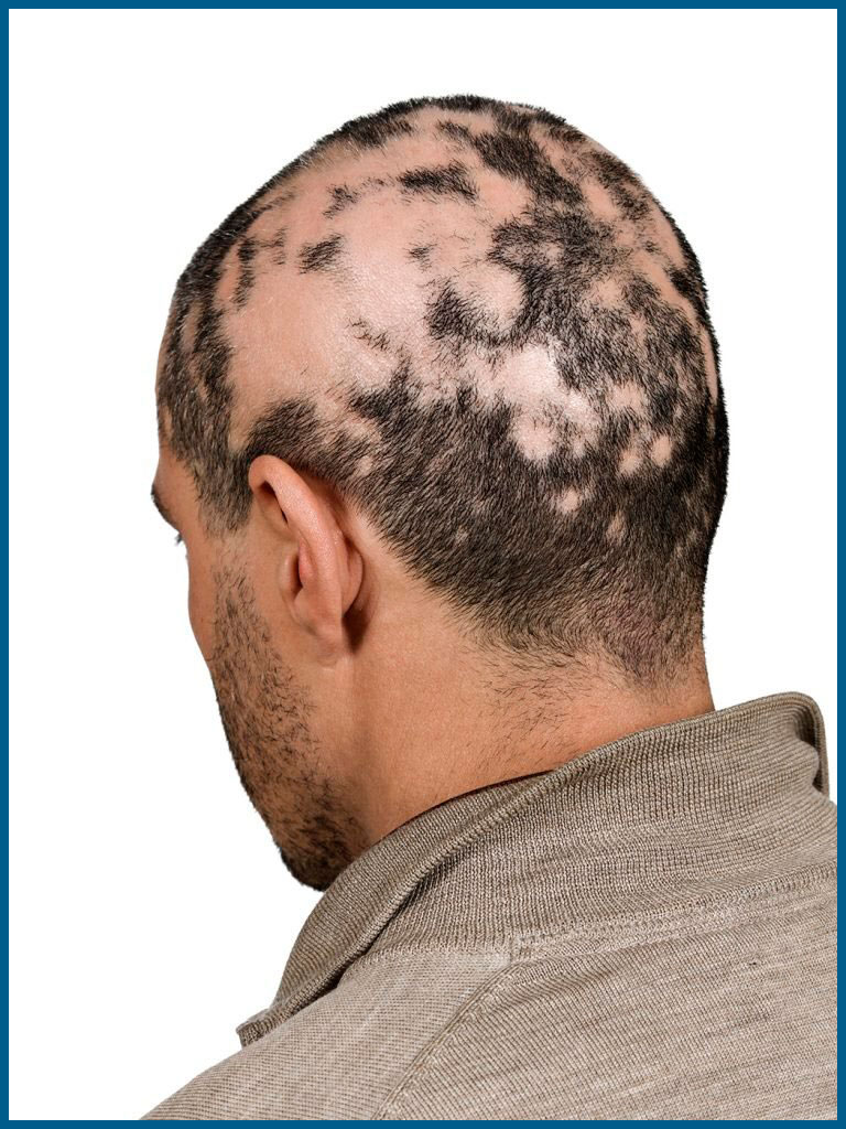 - субтотальная, отличается меньшей скоростью прогрессирования, при этом затрагивает только остевые волосы на голове;