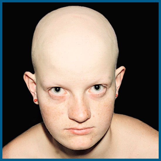 - тотальная. Это серьезный недуг, в течение которого с самого начала происходит стремительное выпадение волос на всей поверхности тела, включая брови и ресницы. Развивается очень быстро, появляются обширные лысеющие участки, которые сливаются, часто в их центре остается несколько здоровых фолликул и волосков.