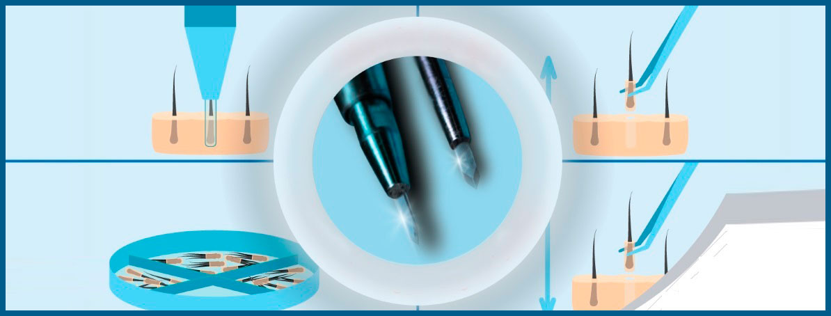 - безоперационный способ. Это существенно менее травматичный вариант, при котором графты забираются по одному из донорской зоны при помощи специальной иглы или просечки.