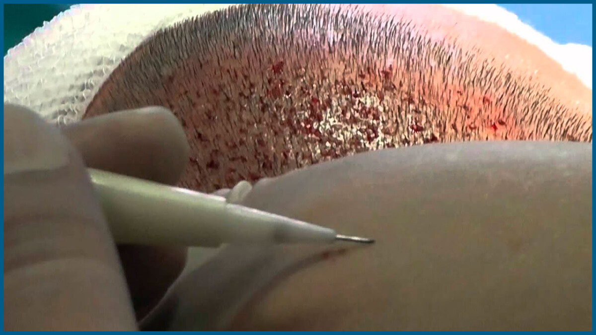 Мы верим, что в настоящее время наилучший метод размещения фолликулярных единиц в реципиентную зону – это использование имплантера. С его помощью волос входит в кожу защищенным металлической оболочкой направленной иглы (которая может быть 0.7, 0.8, 1 мм) и размещается на верной глубине и под верным углом натуральным образом, без давления или повреждения, которые могут вызвать щипцы. Имплантер сохраняет жизнеспособность и целостность ФЕ и как следствие приводит к лучшей выживаемости (более 93%), к лучшему росту и лучшему развитию (меньше фолликулита и меньше струпьев). Более того, создавая меньший надрез ФЕ могут размещаться ближе друг к другу прямо с начала сеанса без беспокойства о выпадении, особенно в тех зонах, где больше плотность и требуется естественность, в передней линии волос, к примеру, где нужна дистанция 1 мм между имплантами. Наконец надрезы на скальпе заживут быстрее, корочка образуется в минимальном количестве и из-за того, что надрезы меньше, кожа восстанавливает натуральное состояние без признаков погружения волосяной луковицы, что часто происходит в связи с другими повреждениями или более крупными имплантантами.