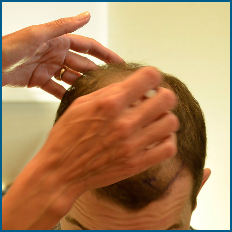 Первый легкий массаж головы после пересадки волос можно делать самостоятельно во время ежедневного мытья волос. Начинать следует спустя 7-10 дней после операции. Нанеся размягчающий лосьон, нужно подушечками пальцев свершать легкие круговые движения в зоне пересадки в течение 3-4 минут. Такой самомассаж улучшает кровообращение в эпидермисе, и помогает быстрейшему отшелушиванию корочек. Кроме того, это способствует лучшему отхождению кожного жира, что облегчает дальнейший выход волоска из фолликула.