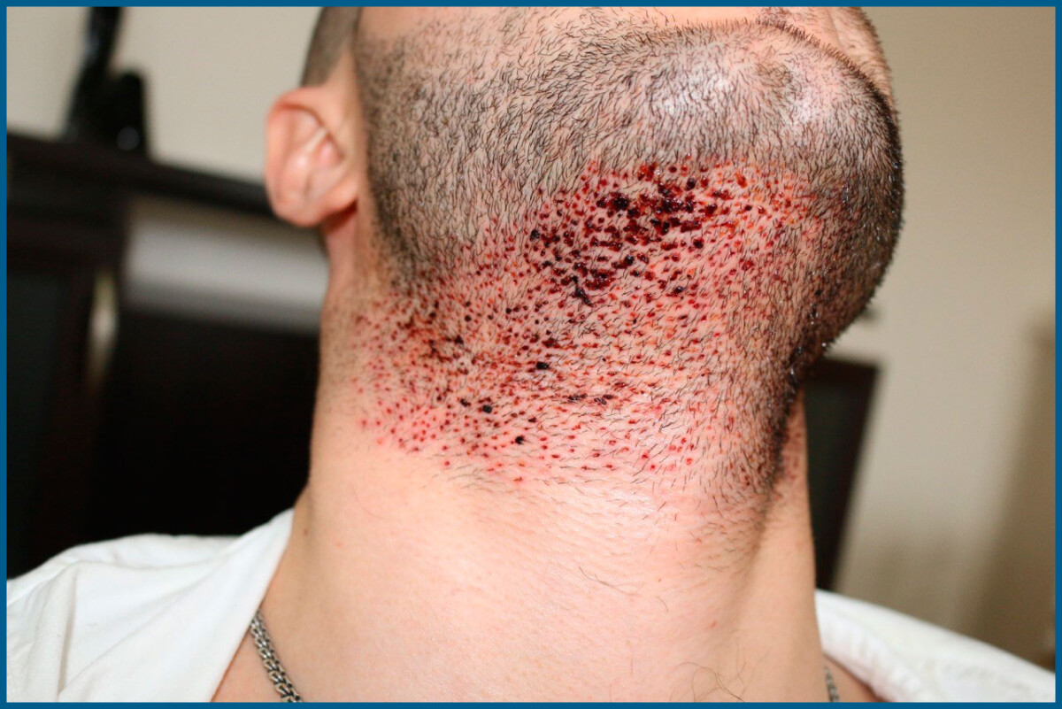 Это приводит к длительному периоду реабилитации в течение которого пациент чувствует дискомфорт и болезненные ощущения в затылочной области. На месте пересадки так же будет появляться небольшой шрам, фактически вокруг графта.