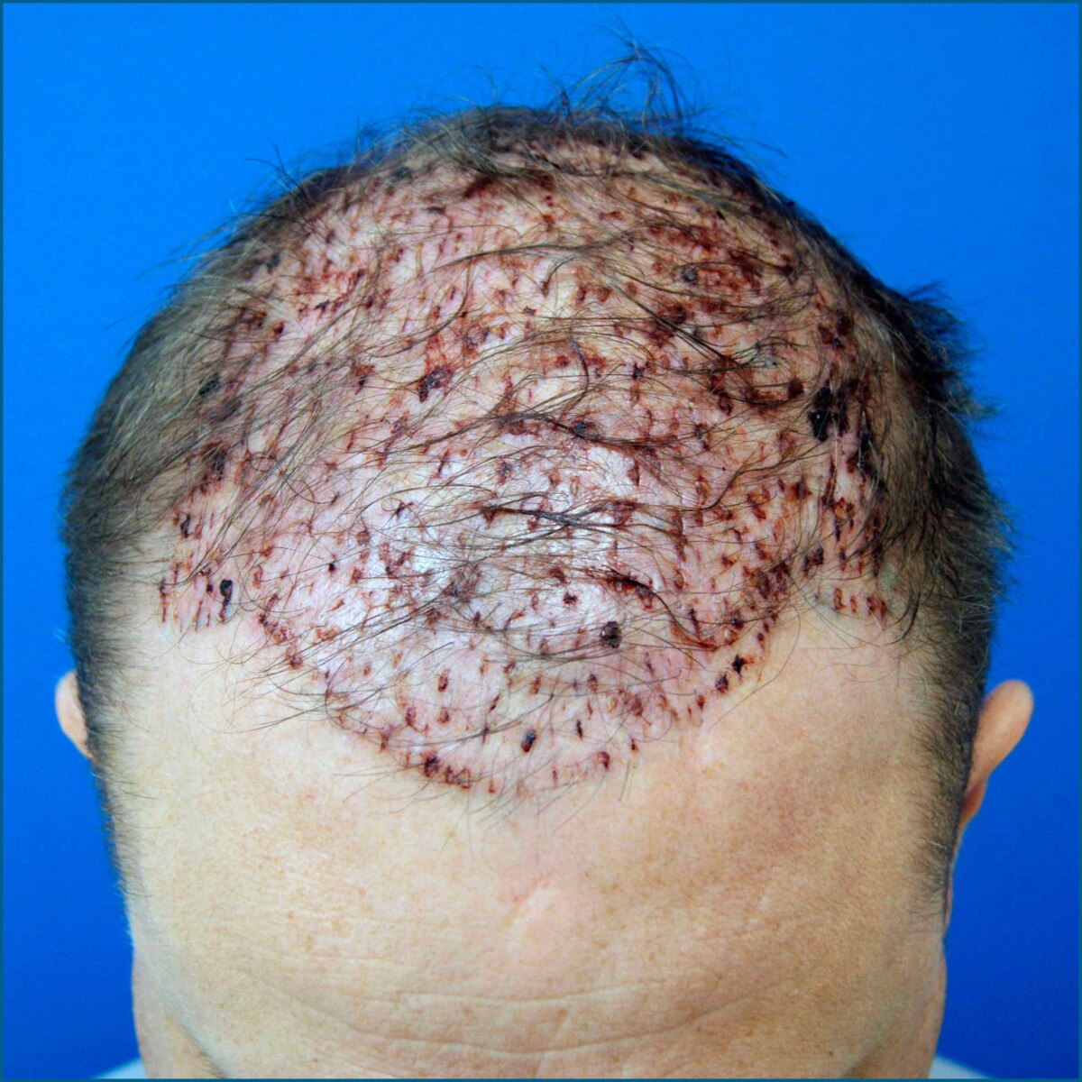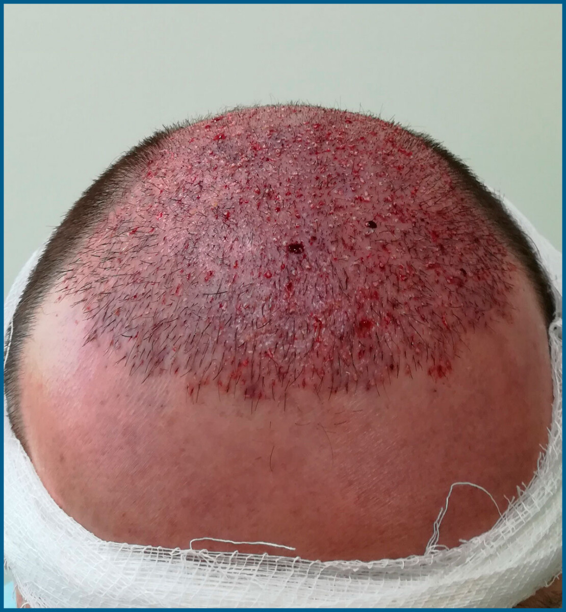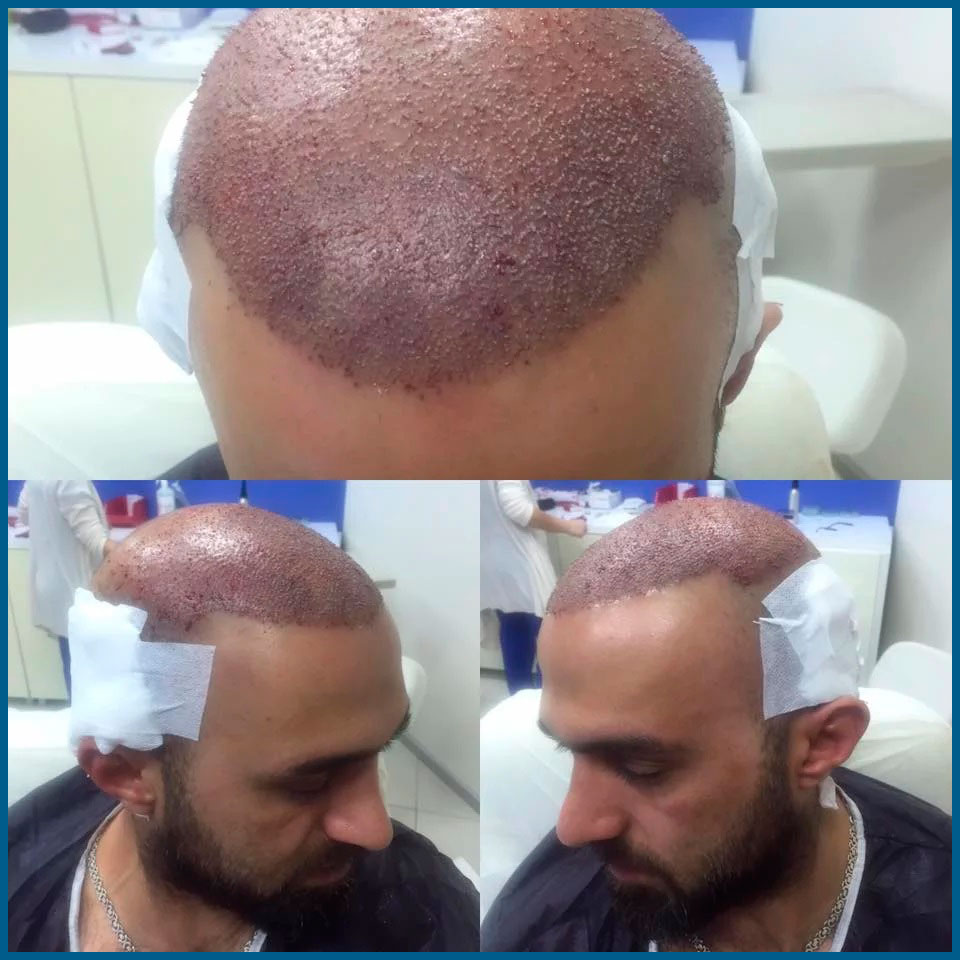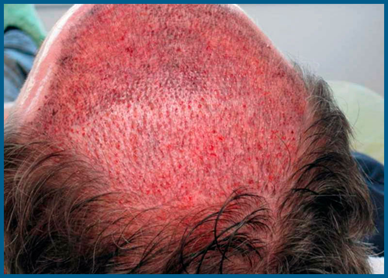 Полностью удалить следы крови, корочки и выделения кожи не удастся в ближайшие 5-7 дней. Элементарно по той причине, что они будут появляться в этот период, но через неделю кожа уже будет полностью очищена и графты будут более менее крепко удерживаться.
