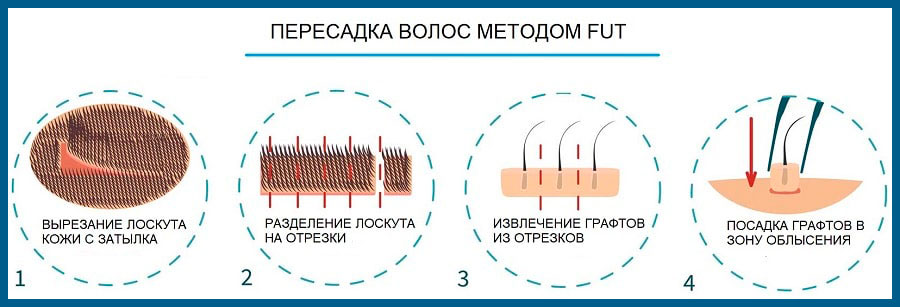 Трансплантация методом FUT Трансплантация методом FUT: полоска кожи головы длиной 20-25 см и шириной 2-3...