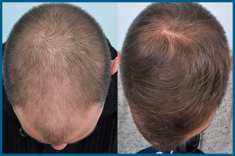 Лечение миноксидилом ведет к утолщению волос в подвергаемых областях, начиная с пушковых волос, также рост наблюдается утерминальных волос в период до 12 месяцев в мужской алопеции также, как и в женской. Лучший результат виден у тех, кто не имеет полной потери волос в подвергаемых областях, по мере того как увеличение плотности главным образом скорее связано с превращением тонких волос в терминальные волосы, чем с ростом новых. Это случается в период не менее чем 4 месяца после первого использования продукта и продолжается до достижения окончательных результатов после одного года.